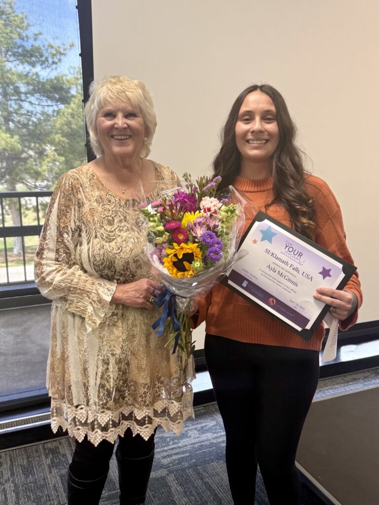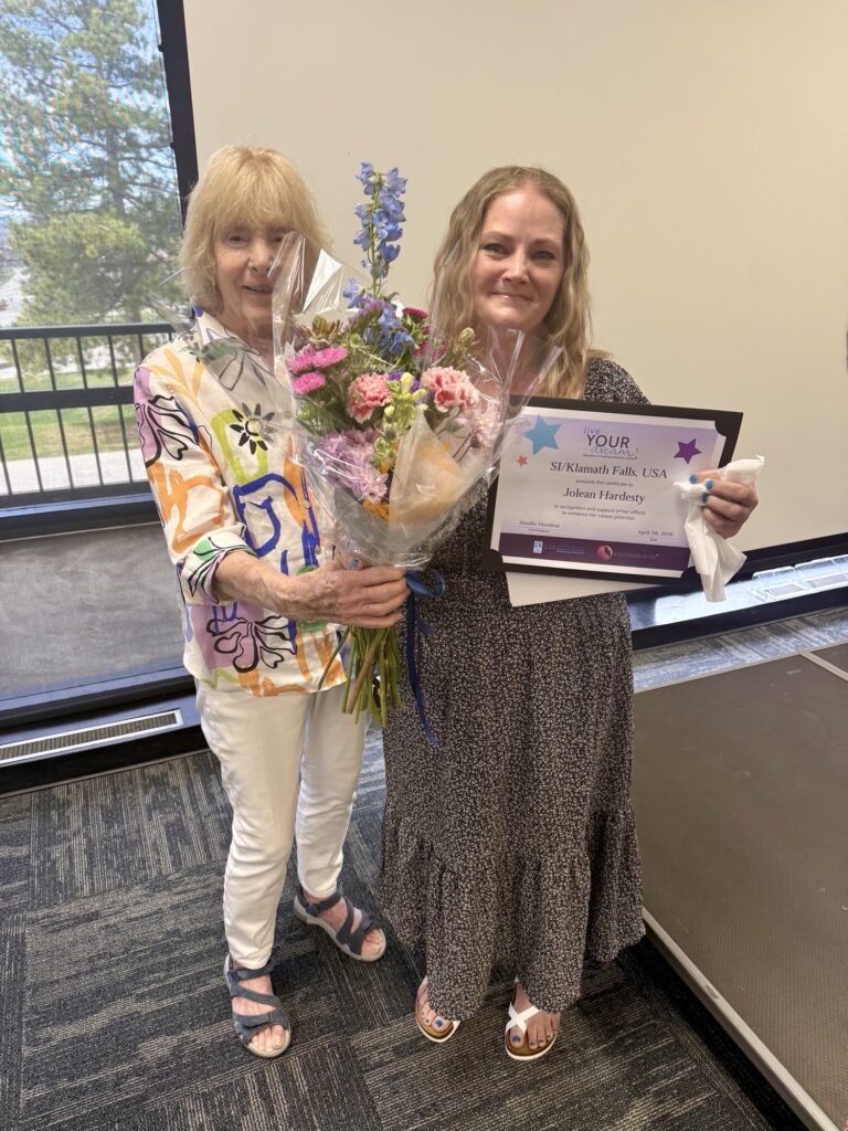 This year Soroptimist International of Klamath Falls gave two “Dream Investor Awards” of $1,000 each to help with the costs of education. The recipients were Tana Erickson, who is studying respiratory therapy and Chey Bristow, who is studying to be teacher.